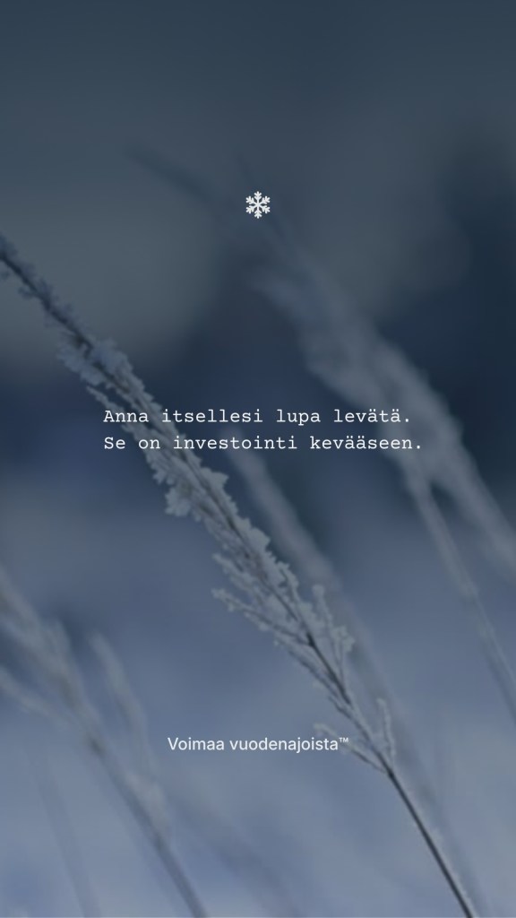 Kun ymmärrät, että kyse on ajoituksesta, voit muuttaa myös sisäistä ääntäsi. Syyttelyn sijaan voit kysyä: “Mitä tämä kertoo mun rytmistä?” Kun otat levon ja palautumisen osaksi suunnitelmaa, dieetti tai elämäntaparemontti ei enää perustu pelkkään puristamiseen. Uudenvuodenlupaus ei katoa mihinkään – se siirtyy ajankohtaan, jolloin keho ja vuodenaika toimivat yhteisymmärryksessä.